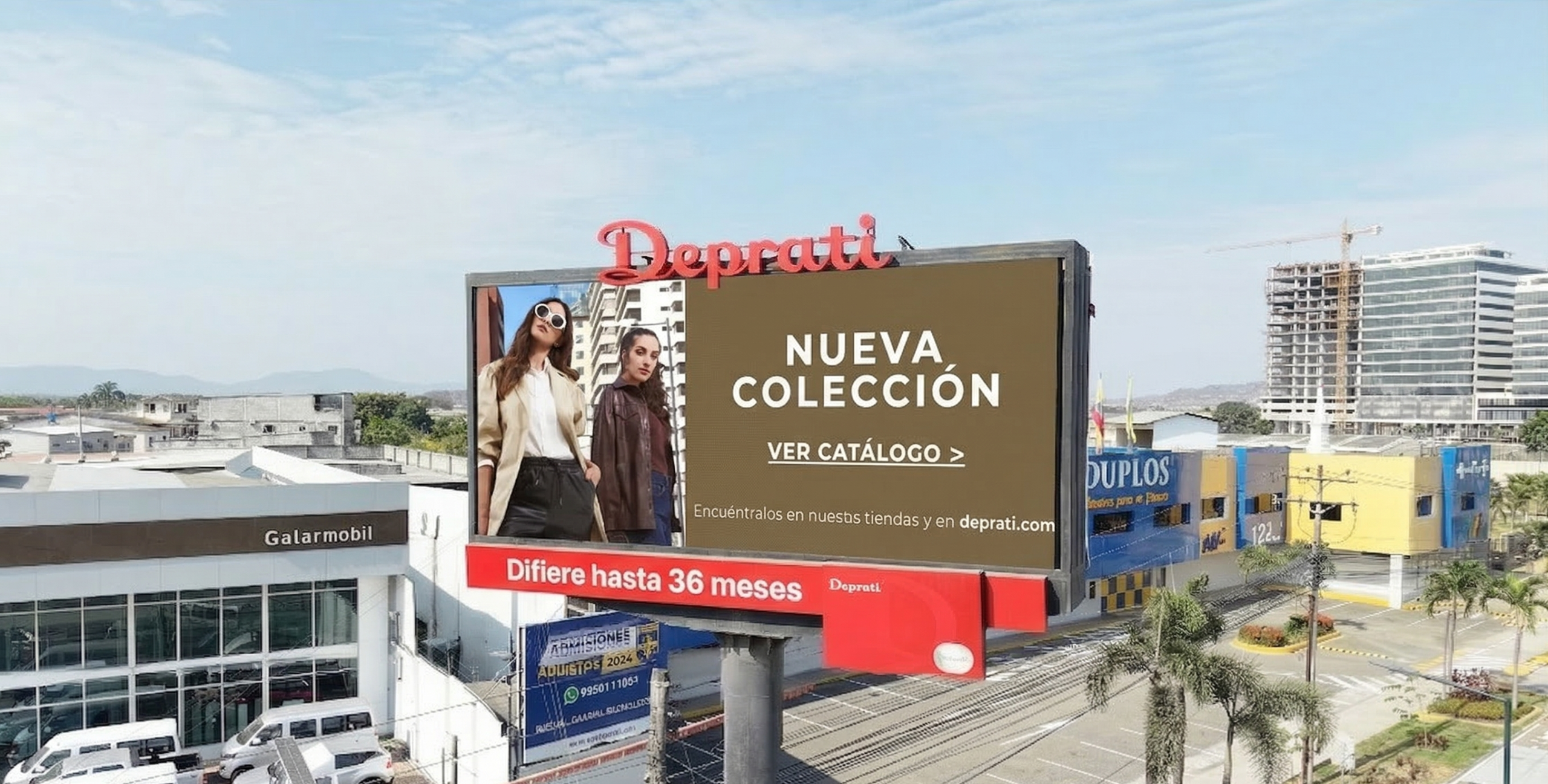 Pantallas LED de gran formato en zonas de máximo flujo vehicular para impacto masivo.